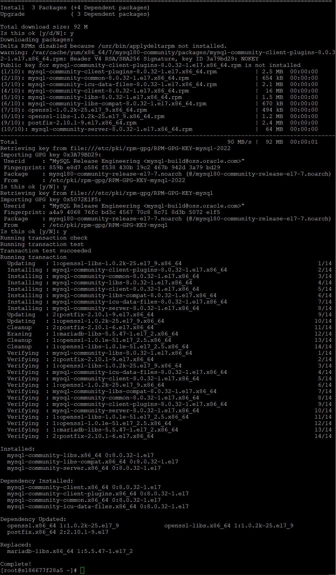 [root@s186677f28a5 ~]# yum install https://dev.mysql.com/get/mysql80-community-release-el7-7.noarch.rpm