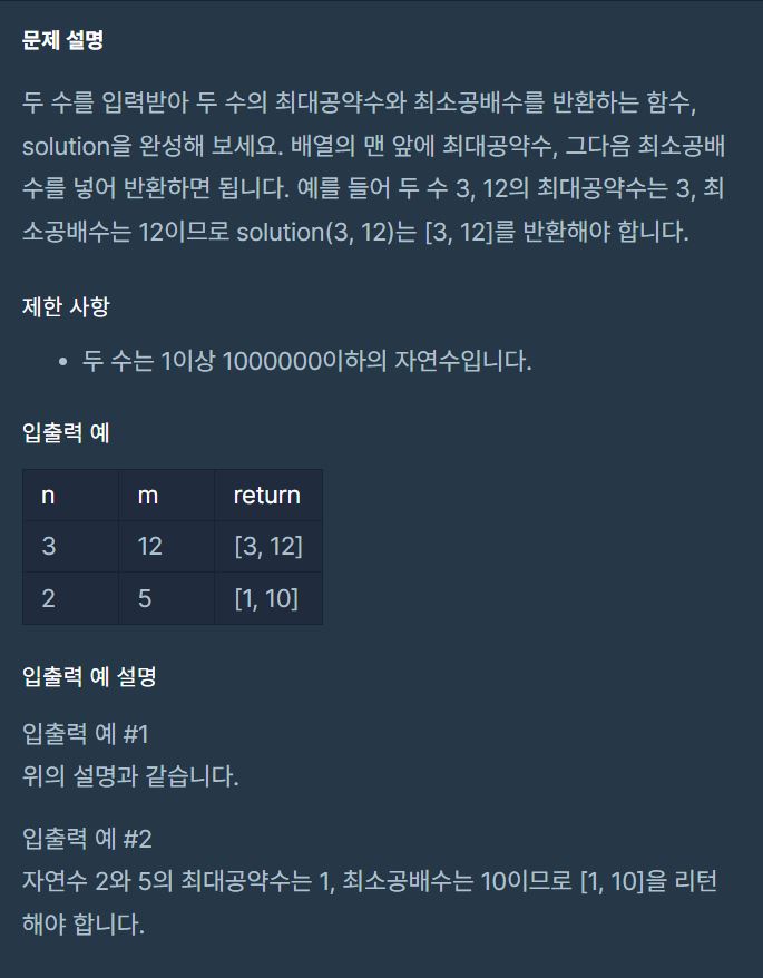 - 두 수의 최대공약수(GCD) 최소공배수(LCM)