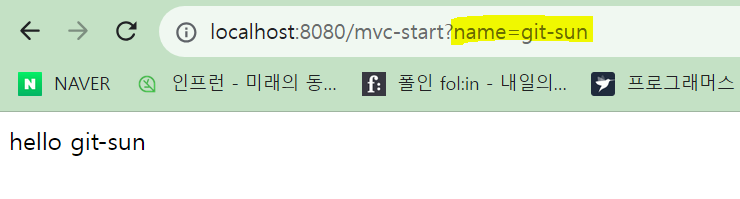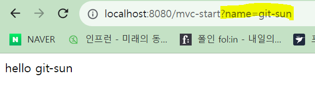 아래는 해당 페이지를 열었을 때, name 파라미터를 출력하는 모습이다