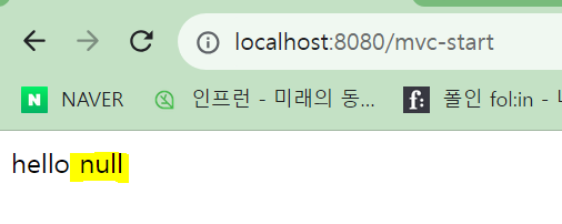빈 값으로 페이지에 출력되는 모습을 확인할 수 있다
