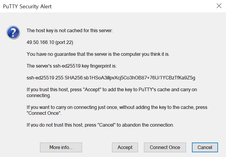 드디어 putty를 이용해 NCP의 서버에 접속을 하셨습니다 !!