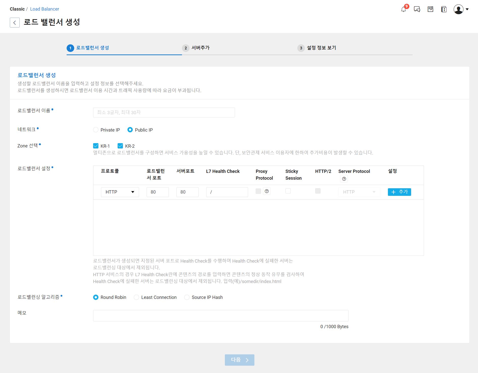 여기까지 진행하면 NCP 로드밸런서로 이동해봅니다