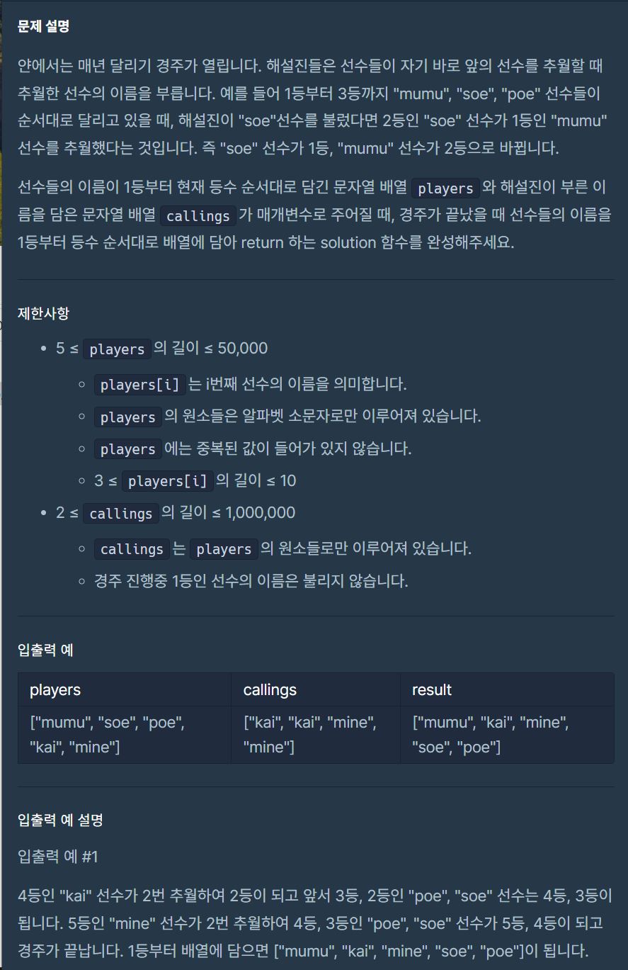 - 선수(players 배열의 원소)와 등수(players 배열 각 원소의 인덱스) 저장