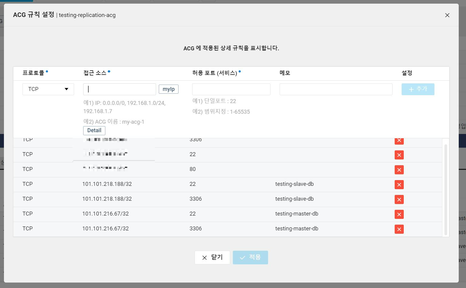 Replication을 위한 서버와 ACG는 다음과 같습니다