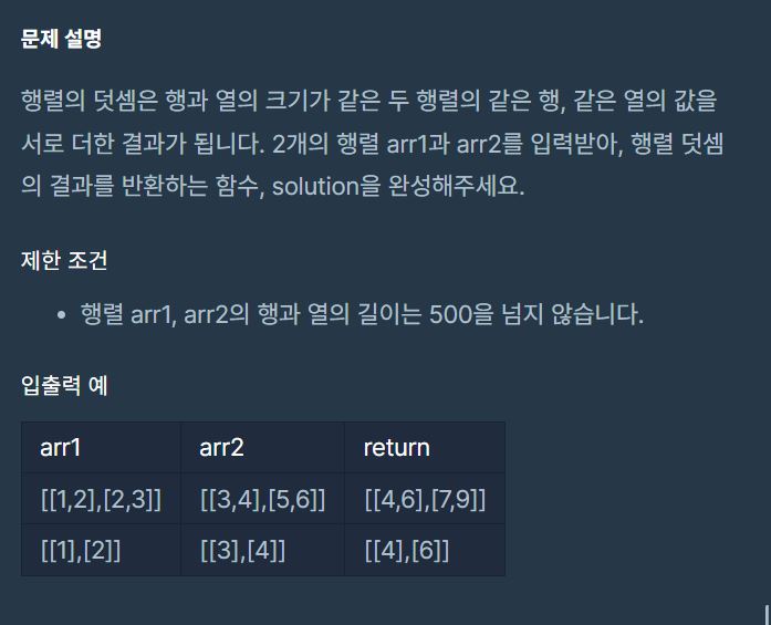 //배열 arr1, arr2의 각 행과 열에 대한 덧셈