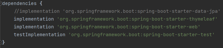 build.gradle -> dependencies에 추가된 Spring JPA가 DB정보를 요구하기 때문에, 이 부분을 주석 처리한다