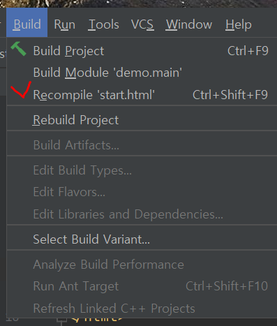 Build - Recompile .. 으로 html 변경 내역을 빠르게 확인해볼 수 있다