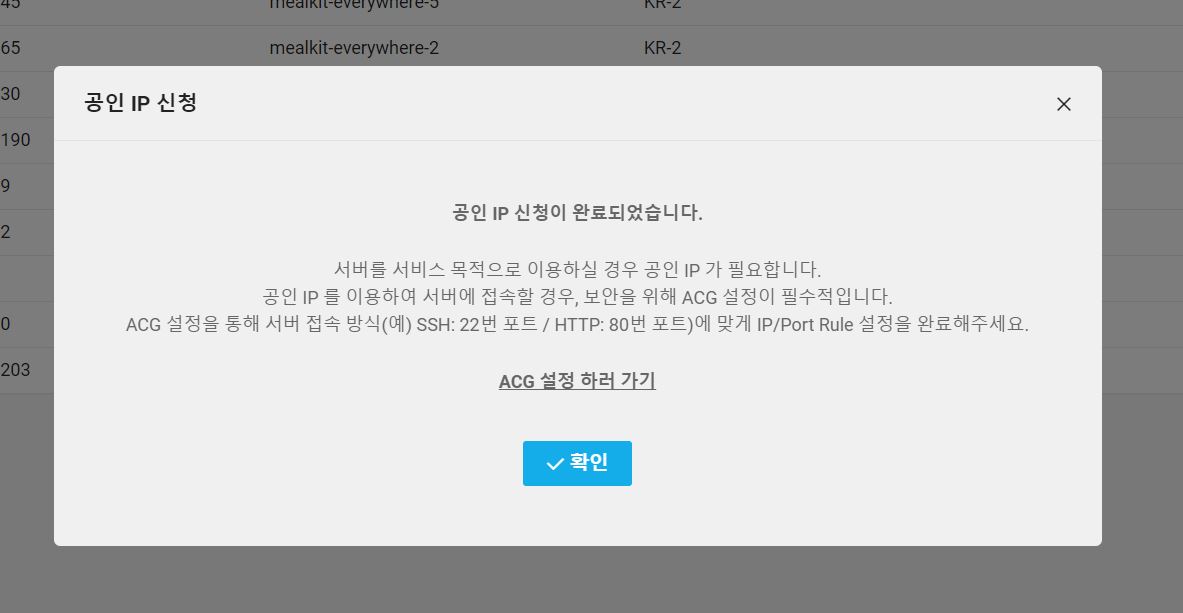 서버 관리 및 설정 변경 -> 공인 IP 설정 변경을 클릭