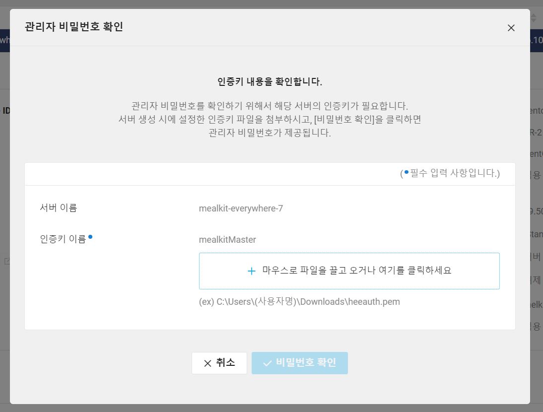 저는 서버 생성 시에 이미 보유하고 있는 mealkitMaster라는 이름의 인증키로 설정했습니다